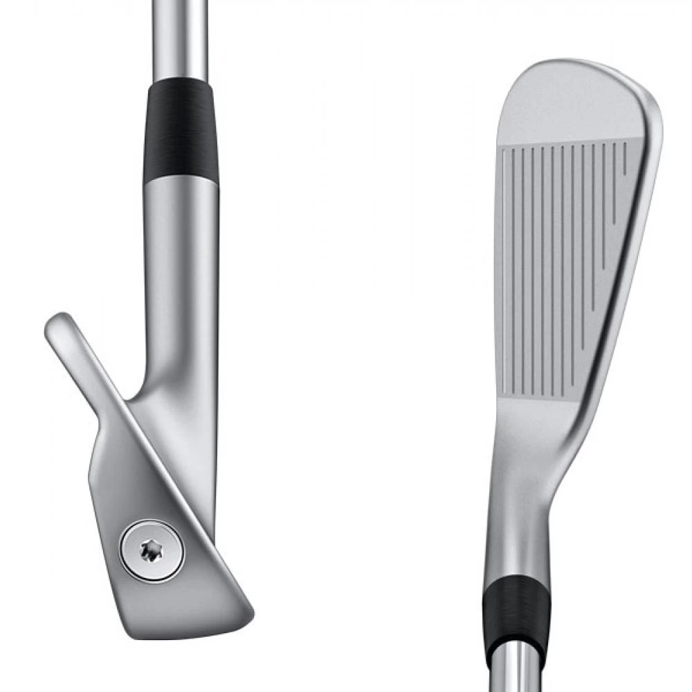 A machined tungsten toe screw adds forgiveness, and combines with an internal heel weight to provide precise swing-weight tuning. The narrower sole enables clean turf interaction for consistent strikes from different lies and turf conditions to maximize versatility for playing all types of shots. A hydropearl chrome 2.0 finish helps ensure solid impact by repelling moisture so the clubs can flush with the ball more consistently and without any unwanted flyers. As standard each set of i Irons comes fitted with Dynamic Gold 120 steel shafts and Compound grips, however 4 different options of shafts , AWT 2.0,true temper XP-95, Nippon Modus 105 and Project X will be available FREE to offer more choice than ever before without breaking the bank.