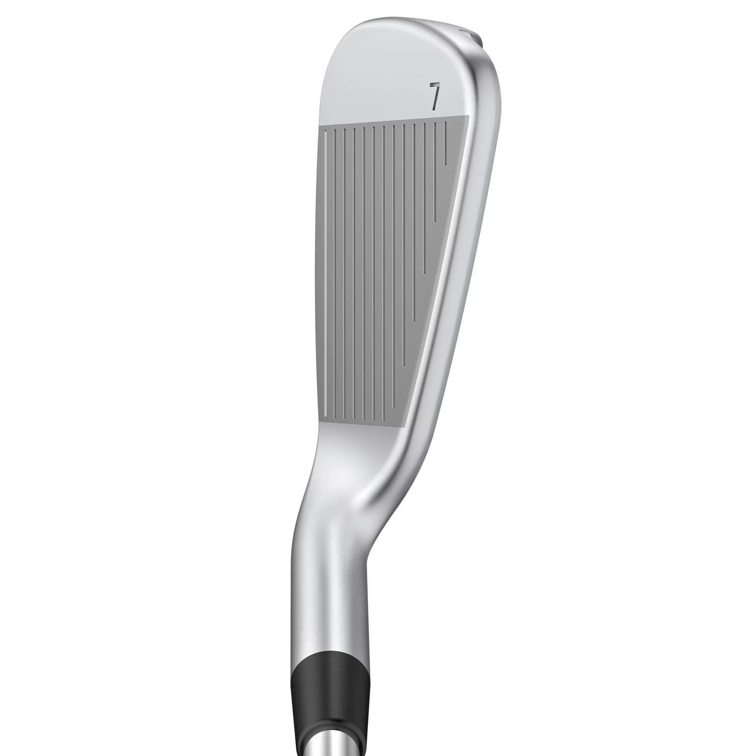 The PING G430 irons Graphite constructed with their new Purflex Technology. It means that seven flex zones across the club face allows for increased free bending and higher ball speeds. At all contact points as a result. A new, thinner face combines lower CG to providing superb 2mph extra ball-speed over the G425. Ball-striking feel and acoustics have been significantly improved by the use of a Multi-Material badge. And players rewarded through the strike by superior feedback. Tungsten toe and shaft tip weights added increasing the forgiveness levels meaning that even shots struck some distance off-centre, still produce consistent results. The G430 iron also benefits from a clean look. With a shorter hosel it so also helps lower the CG and align it with the force-line to increase ball speed. Especially low on the face.