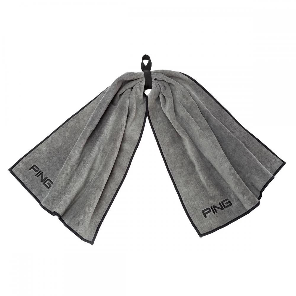 Keep your clubs sparkling and free from debris with the PING Players Towel. Featuring a waffle-knit, textured fabric that locks away dirt and easily cleans away grass or mud. Made from a blend of polyester and polyamide material creating a durable towel that lasts round-after-round. Includes an elongated center slit so the towel can easily be hung from a golf club when not in use – keeping it from getting lost or falling off of your golf bag. Waffle-knit, textured material thoroughly cleans club grooves. Traps dirt and easily wipes away mud and grass. Size: 30″ (L) x 17″ (W)