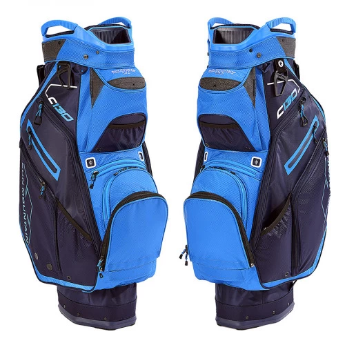 - Keep Your Clubs Organised with the 14-Way Top: The Sun Mountain C130 Cobalt Cart Bag has a 10.5 inch, 14-way top with individual, full-length dividers. (with box construction) so ensures the clubs are organised and easily accessible during long days on the course.