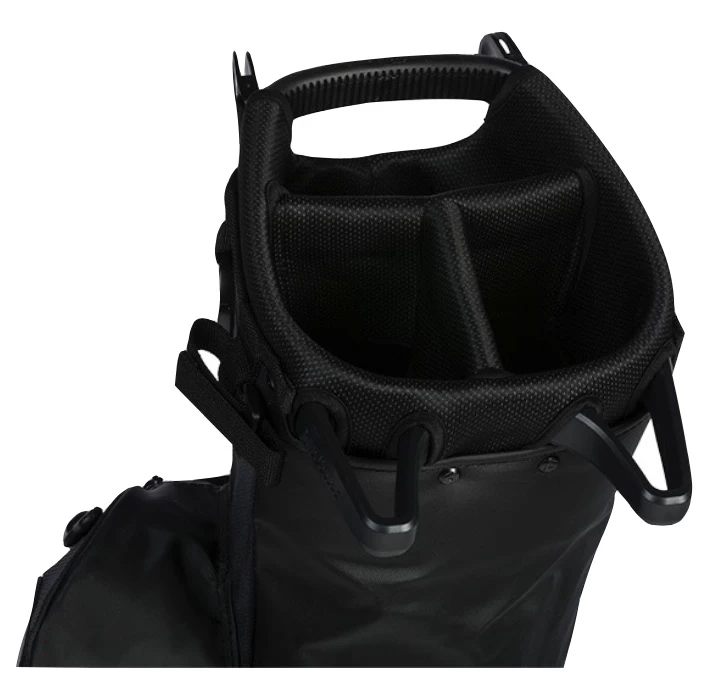 This unique mini stand design only weighs 1.2 kilogrammes and is ideal for carrying a few or a full set of clubs. This small bag has surprising lots of room to carry and store the rest of your golfing accessories. This bag has a dual strap for easy carry, four pockets. Three of the zip pockets are weather resistant, a velour-lined pocket for storing your valuables.