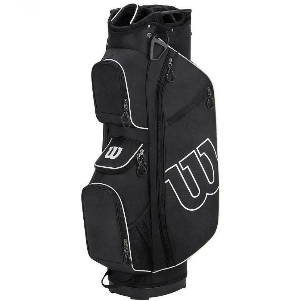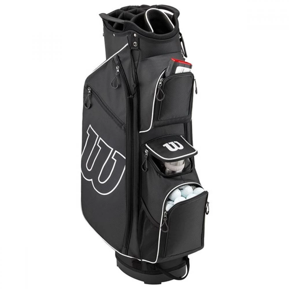 One of the main features of the Wilson Prostaff Cart Bag is its 9″ x 11″ top with 14 way dividers, making enough room to fit all your clubs in seperately. This protects the shafts and keeps your golf clubs organised and secure. With 7 pockets in total, one large side pocket, a range finder slot and a waterproof pocket.