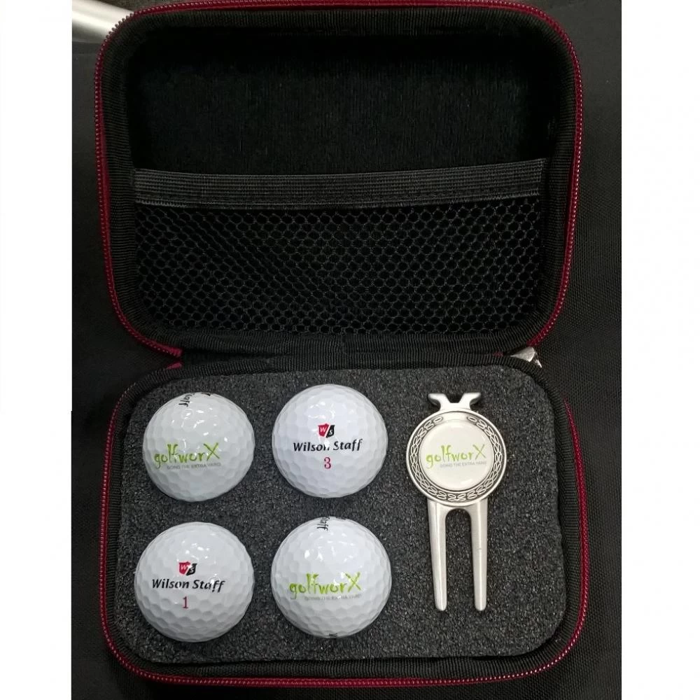 Brilliant Gift pack for golf societies or great gift that wont break the bank. Pack inlcludes 4 x Wilson Staff Duo Soft 2021 Soft Golf Balls Embossed with the Golfworx logo, Complete with Pitch mark repairer and Ball marker, Complete with a superb hard case perfect for your phone, valuables and mesh pocket too once you take the balls out. Real useful item on and off the course